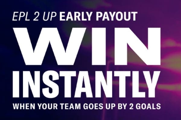 When betting on EPL Match Result odds, you can receive an early payout if your team takes a 2-0 lead.