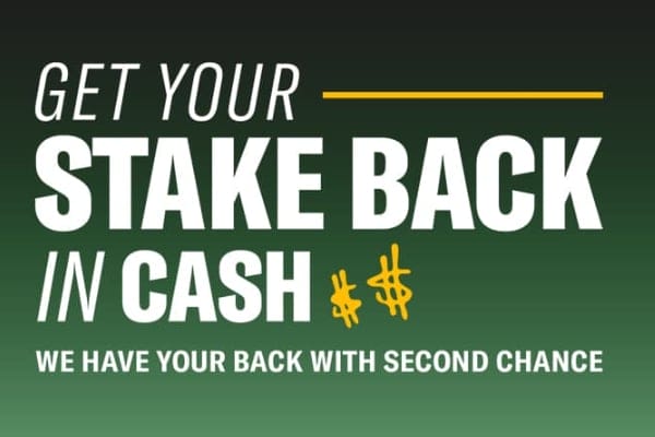 For example, Second Chance might be available on pro football games. You bet $30 on a player to score the game’s first touchdown. With +150 odds, the potential payout is $75 (including stake).
